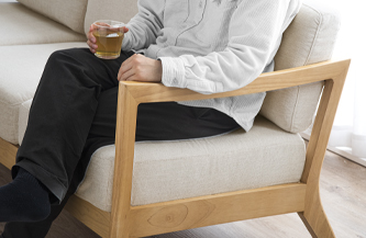 座面/背もたれのクッションには高密度ウレタンを使用し、硬めに設計されています。沈み込みを減らし、ソファが体をしっかりと支えてくれることで、長時間座っていても疲れにくい座り心地となりました。お気に入りの空間に長時間座ってもストレスなく快適にお過ごしいただけます。