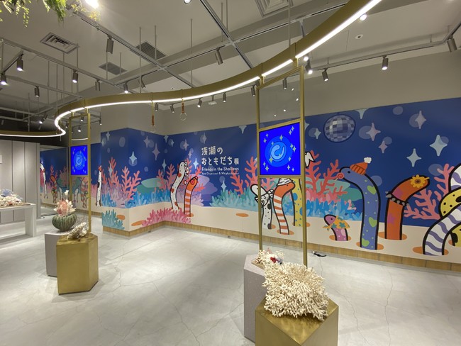 実証実験として行っている「浅瀬のおともだち-Friends in the Shallow-展」は、東京藝術大学(絵画化日本画専攻)卒のアーティスト・中條亜耶氏、NFTクリエイター・Whiplus氏の作品である「浅瀬のおともだち-Friends in the Shallow-」(以下、「チンアナゴ」という)を中心とした空間を形成しています。