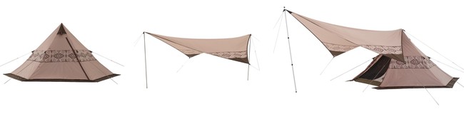本シリーズは、ユニークなデザインが特長のテントとタープです。模様の中にLOGOSの定番アイテムが隠れたLOGOS LAND柄をあしらった、組立て簡単で人気のティピーテントと、耐風性にすぐれたウイング型のツーリングタープが登場しました。
