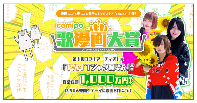 株式会社viviON(以下viviON、所在地:東京都千代田区、代表取締役:明石耕作)は、自社が手掛ける漫画(comic)と音(pop)をテーマにした、聴いて楽しむマンガアプリ『comipo』におきまして、人気スリーピースロックバンド「ヤバイTシャツ屋さん」の楽曲をテーマにした漫画を公募する、「comipo歌漫画大賞」を開催します。