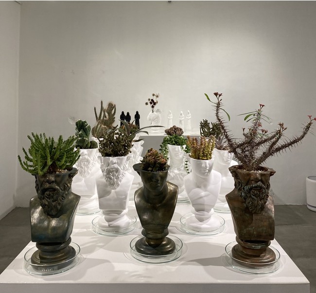 emethでは、偉人像や造形物などの無機物に自然要素を加え、それぞれの思考を植物によって具現化し各々の価値観により見えてくるメッセージを齎(もた)らす。