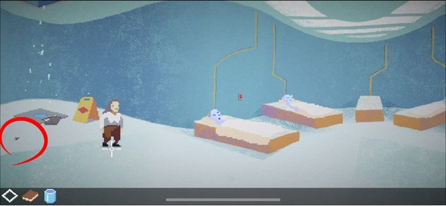 ▲病室の左奥の床に小さなボルトが転がっているのでタップして入手します。iPhoneユーザーは画面の形により見えにくいこともあります。