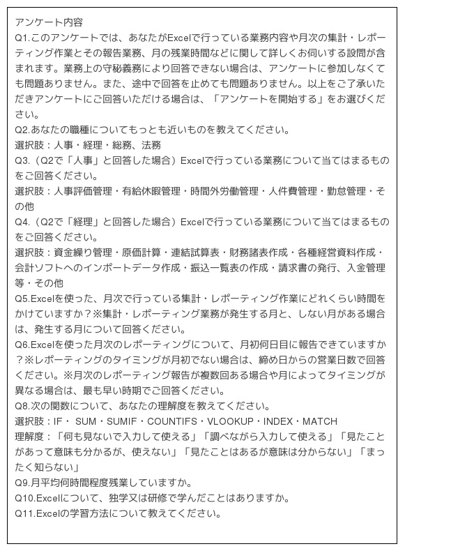 この結果から、多くのバックオフィスでは「Excelができる人に業務が集中してしまっている」もしくは「関数知識だけを駆使して、無理にやりくりをしている」状況にあることが考えられます。