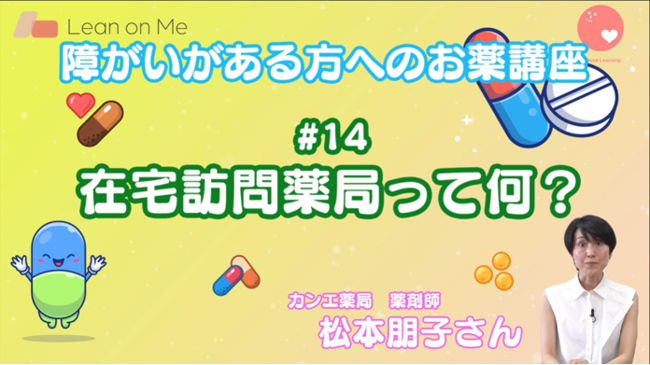 障がい者の社会参加・地域社会における共生を進める社会において、1人で通院できない、自分で薬の管理が出来ないなど、患者さん一人ひとりが抱えられている事情に対しても、「薬」を正しく使用できるお手伝いをすることでダイバーシティ&インクルージョン社会の実現を目指されています。(カンエHPより)