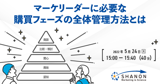 株式会社シャノン(本社:東京都港区、代表取締役社長:中村 健一郎)は、「購買フェーズの全体管理」についてご紹介するウェビナー5月24日(火)に開催します。