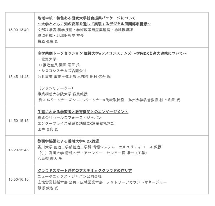 急速なデジタル化の流れによって大学などの高等教育機関に求められる役割も変化してきており、それに合わせた教育DXや学内業務の見直し、多様な外部のステークホルダーと連携できるデジタル環境作りなどが必要となってきています。今回はそんな「大学の役割」の変化を捉え、いかにデジタル化を進めていくか、先進事例の紹介や有識者による解説を3時間にわたってご提供します。人材やノウハウの不足によってなかなか進まないというお悩みの声も多い中、具体的な進め方や民間企業との連携方法まで知れる貴重な機会となりますので、大学関係者は必見です。