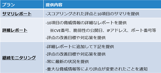 サイバー攻撃による侵害の可能性と相関性のあるスコアを定量的に提示するSaaS型サービスです。実際にお客様のシステムに負荷をかけることなくインターネット上から非侵入で収集できる情報に基づき分析します。