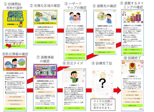 特 徴:最初に選択した市町村に連動し、訓練内で使用するリンク先を選択市町村がフォーカスされた形で表示させることで身近な情報が直感的に入手可能となり、参加者の検索する負担を大幅に軽減。