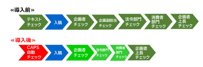 ・入稿前のテキストチェックは、商品パッケージの管理ルールに基づいて、CAPS自動チェックに切り替え
