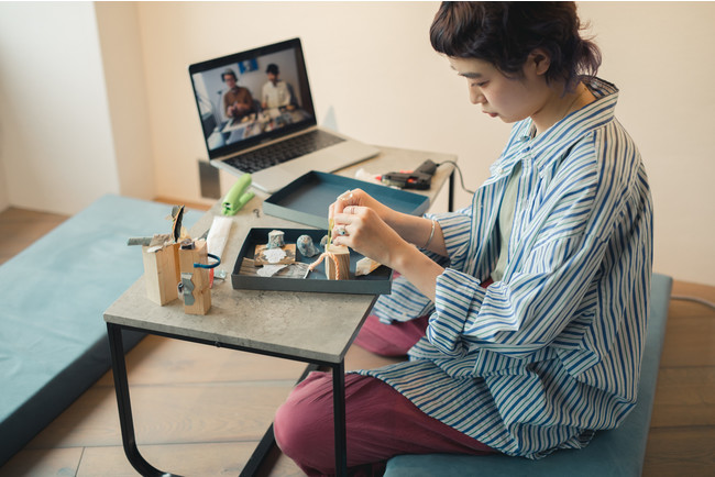 木村華子による接着剤を使わず、思い出に残るコラージュ写真を作成できる「重ねる」、副産物産展(https://byproducts.thebase.in/)の協力をいただき、アーティストのアトリエから収集された廃材=副産物を使ってオリジナルのオブジェを作れる「くっつける」の3種類を提供中です。