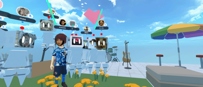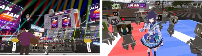 有料ライブイベント「JAM JAM powered by smash.」では、「SHOWROOM」での高画質オンラインライブの後に「バーチャル渋谷」で行われたファンミーティングでも、インタラクティブな体験が生まれています。森内寛樹さんと優里さんの合同ファンミーティングでは、2人がステージから降りてきて一緒に写真撮影をしたり、目の前で優里さんのサプライズな弾き語りが行われたりなど、メタバースならではのファンとアーティストの距離感の近さに感動の声が寄せられました。また、VTuberの相羽ういはさんのファンミーティングでは「だるまさんが転んだ」で遊ぶなど、ファンと一緒に作り上げるイベントとして喜ばれていました。