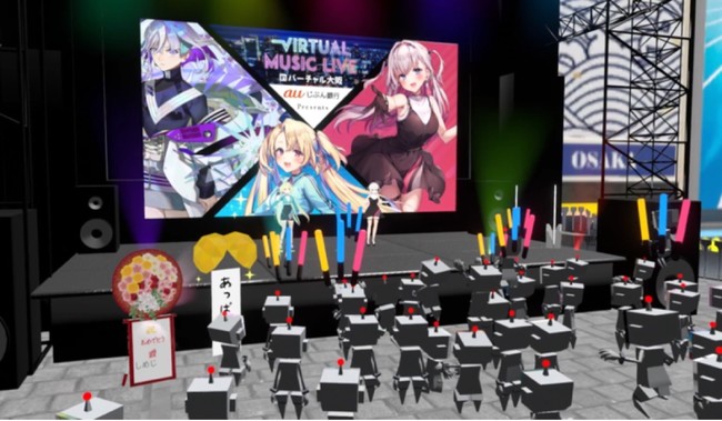 「バーチャル大阪」で開催した『auじぶん銀行 Presents VIRTUAL MUSIC LIVE in バーチャル大阪』では、応援量でステージが変化するというファン参加型の新しい体験が生まれました。参加者からの投げ銭やコメントで一定数の応援が集まると、パフォーマンスを行うステージが3段階でアップグレードします。展開が予想できないイベントでしたが、ステージが変わるごとに、ファンからも熱を帯びたコメントが多く飛び交うなど、大きな盛り上がりを見せました。