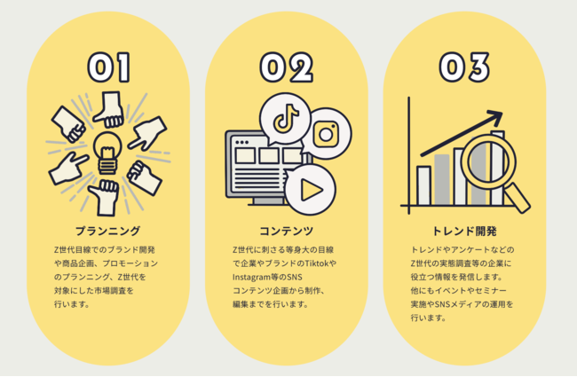 事業内容:Z世代に関する企画・マーケティング事業、ブランド事業