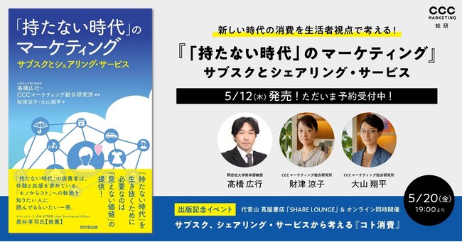 同志社大学商学部高橋教授とCCCマーケティング総合研究所の研究成果をまとめた書籍、『「持たない時代」のマーケティング-サブスクとシェアリング・サービス』の出版記念イベントです。