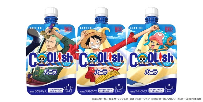 株式会社ロッテは“飲むアイス”の「クーリッシュ」ブランドにて、大人気アニメ「ONE PIECE」とコラボレーションします。 5月中旬より「クーリッシュ バニラ<ONE PIECEコラボ>」を全国のコンビニエンスストア先行で順次発売、5月31日(火)に「クーリッシュ ベルギーチョコレート<ONE PIECEコラボ>」を全国のコンビニエンスストアで先行発売します。今回のコラボレーションのために描き下ろされた、つながる“ひとつなぎの大氷菓”デザイン18種と、8月6日(土)公開『ONE PIECE FILM RED』と連動したシークレットデザイン2種の全20種にて展開します。(デザイン数は2品合計)