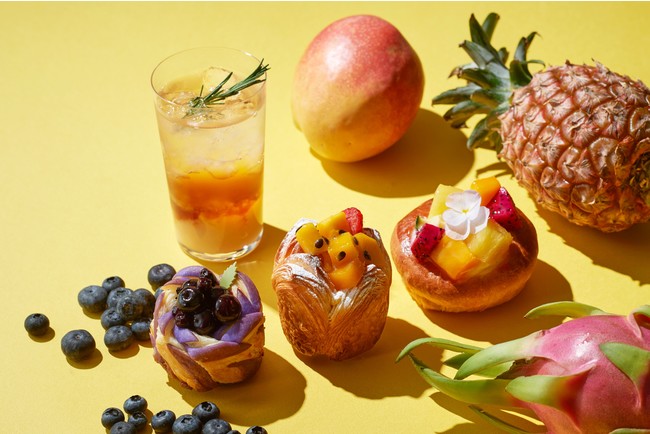 太陽をたっぷり浴びたフルーツがいっぱいの楽園をイメージし、パイナップル、マンゴー、ドラゴンフルーツなどのトロピカルフルーツを用いたブレッドやドリンクをご用意しました。