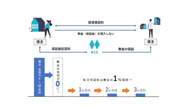 AI定性与信審査技術の開発と提供及び同技術を用いたFintechサービスの提供を行うH.I.F.株式会社(本社:東京都新宿区、代表取締役CEO:東小薗光輝、以下H.I.F.)は、AI定性与信審査技術を活用し家賃保証事業に続き敷金保証事業を開始いたします。これまでの与信審査ノウハウを活用し、法人向け事業用賃貸と個人向け住居用賃貸に敷金保証サービスの提供を開始いたしました。