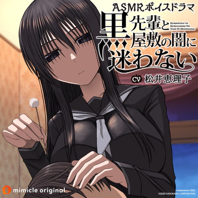 株式会社KADOKAWA(本社:東京都千代田区、代表取締役社長:夏野剛、以下 KADOKAWA)は、ゲームアツマールにて配信中のフリーゲーム『黒先輩と黒屋敷の闇に迷わない』(喘葉の森)のASMRボイスドラマを、ボイスドラマ・マーケットプレイス「mimicle(ミミクル)」にて、2022年5月20日より配信することをお知らせいたします。また、アルバムアートワークとメインキャストを公開いたしました。本作は原作ゲームのストーリーをほぼ完全再現したASMRボイスドラマとなります。