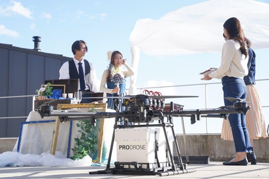 ~産業用ドローンで空からウェディングディングドレスをお届けする演出も~