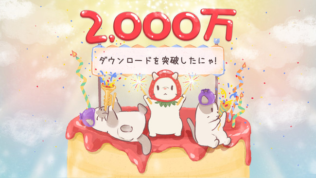 2022年1月に両ストア(Google Play Store、 App Store)累積ダウンロード数1,000万を記録しておりました『猫とスープ』は約4ヶ月で2倍となる2,000万ダウンロードを記録いたしました。
