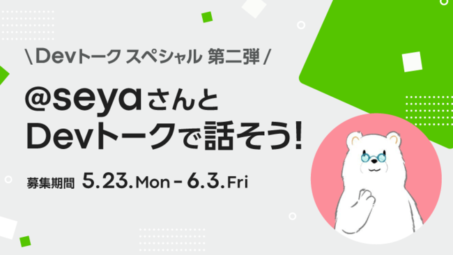 株式会社エイチームのグループ会社であるQiita株式会社(本社:名古屋市中村区、代表取締役社長:柴田健介)が運営する「Qiita Jobs」は、エンジニアが特定のテーマを軸にマッチングし、知識共有や交流ができる機能「Devトーク」の特別企画として、「Qiita」で活躍するTOP Contributor、seya氏との「Devトーク スペシャル」の募集を5月23日(月)より開始しました。