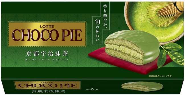 株式会社ロッテは、ロングセラーブランド「チョコパイ」史上初となる色鮮やかな緑の『チョコパイ〈京都宇治抹茶〉』を発売します。日本の四季を感じ、食べる人の気持ちを彩るチョコパイシリーズ第2弾です。ケーキ、クリーム、コーティングにそれぞれ京都府産宇治抹茶を使用しており、個包装を開けた瞬間から抹茶の香りが広がる、初夏にぴったりな爽やかな抹茶味のチョコパイです。