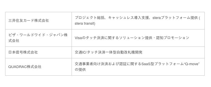 三井住友カード株式会社(本社:東京都江東区、代表取締役社長:大西 幸彦)、ビザ・ワールドワイド・ジャパン株式会社(本社:東京都千代田区、代表取締役社長:スティーブン・カーピン)、日本信号株式会社(本社:東京都千代田区、代表取締役社長:塚本 英彦)、QUADRAC株式会社(本社:東京都港区、代表取締役社長:高田 昌幸)は、福岡市地下鉄において、三井住友カードが提供する公共交通機関向けソリューション「stera transit」を活用し、Visaのタッチ決済による一体型改札機通過に関する実証実験を2022年5月31日より実施します。