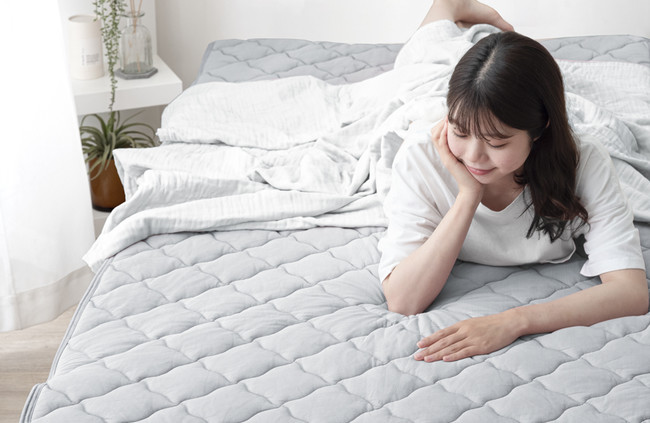 近年、夏が近づくと接触冷感寝具が多く販売されています。しかし、従来の接触冷感寝具のひんやり感は一瞬で、寝ている間に熱や湿気を発生し、すぐにぬるくなってしまうという問題がありました。この敷パッドはその問題を解消する為に‘’持続冷感‘’にこだわり商品開発されました。