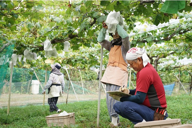2021年1月より広島県竹原市のオーナー不在となったぶどう園を八天堂と社会福祉法人宗越福祉会で引き継ぎ、「八天堂ぶどう園」(所在地:広島県竹原市小梨町の山間部 URL :https://hattendo.jp/hattendo_grape/)として運営をしています。竹原市は明治初期からぶどうの栽培が始められた100年以上の歴史ある産地です。後継者不在の農園を企業が継承し、生活に困窮された方や、障がいを持たれた方などの自立支援を目的とした商工農福連携型事業モデルとしてスタートしました。ぶどうの栽培を復活させ、くりーむパンをはじめとした、食品製造の経験を元に、地域の魅力的な産物をより多くの方に味わっていただきたい。そんな想いを作業いただく皆様と分かち合いながら、ぶどうづくりを行っています。ぶどう園では「赤」「黒」「青」系の3色、10種類以上のぶどうを栽培しています。