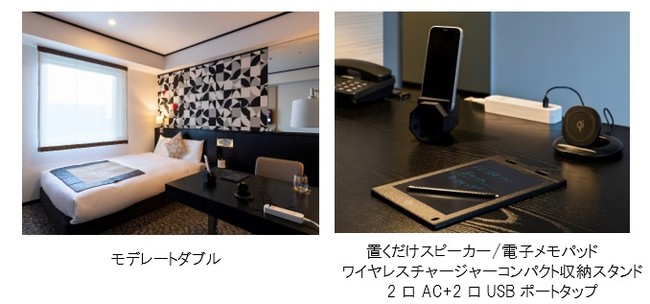 お部屋でのお仕事に便利な独立型の大きなライティングデスクが特徴的なお部屋に、リモートワークが捗るモバイルアイテムを設置しております。