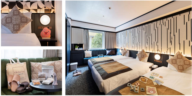 コンセプトルームにご宿泊のお客様に、それぞれのテーマに合わせ、お持ち帰りいただける3COINSアイテムをご用意いたしました。おうち時間を“ちょっと幸せ”にするアイテムを、ご自宅でもご体験ください。