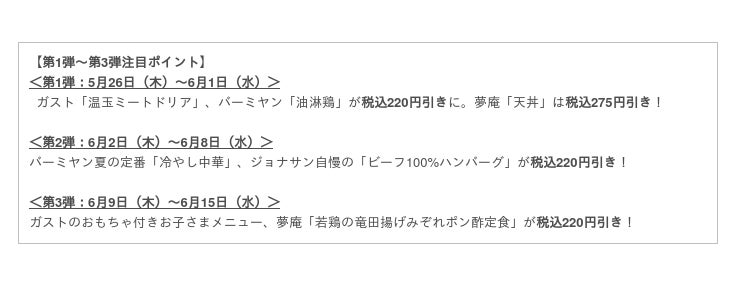 ※ガスト・ジョナサンではモーニング時間帯(~10:30am)を除く