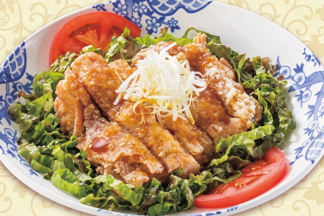 大判の鶏肉をサクッと揚げ、甘酢しょうゆを絡めた大満足ボリュームメニュー!別添えの特製胡麻ソースをかけて食べれば、味変で二度美味しく楽しめます。