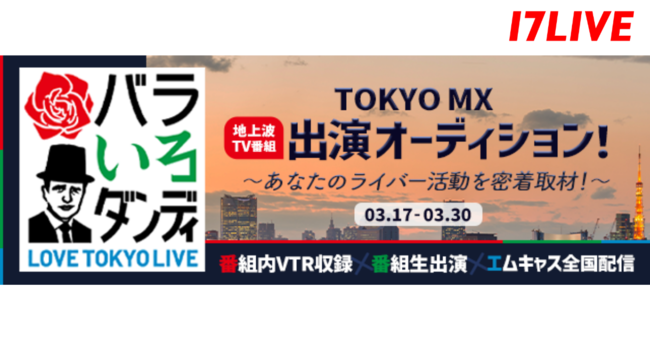 17LIVE株式会社(東京都港区、代表取締役:小野 裕史、URL:https://jp.17.live/)が運営する日本No.1(※1)ライブ配信アプリ「17LIVE」では、今年3月に実施したアプリ内イベント「TOKYO MX 地上波TV番組『バラいろダンディ』出演オーディション!」において、上位に入賞したライバー(ライブ配信者)3名に『バラいろダンディ』への出演権が贈られ、2022年5月31日(火)20時30分より放送される当番組に出演することが決定しましたので、お知らせいただいます。