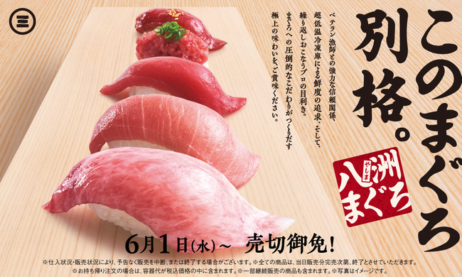 株式会社FOOD & LIFE COMPANIES(本社:大阪府吹田市、代表取締役社長 CEO:水留 浩一)の子会社である株式会社 京樽(本社:東京都中央区、代表取締役社長:堀江 陽)が展開する「回転寿司みさき(旧:海鮮三崎港)」は、旨さにこだわりご提供している“極旨まぐろ”シリーズから、6月の期間限定商品として、静岡県で60年以上続く老舗まぐろ問屋“八洲水産(やしますいさん)”より仕入れた天然本まぐろの商品を発売いたします。
