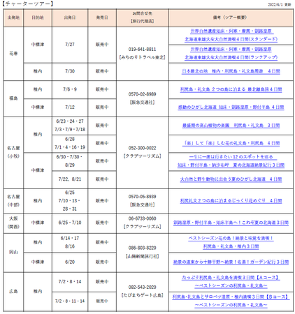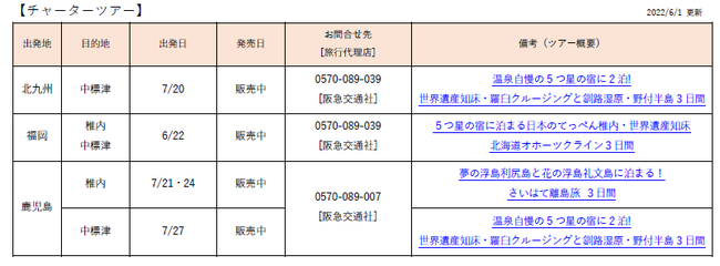 現在販売中の『チャーターツアー』について、お知らせいたします。