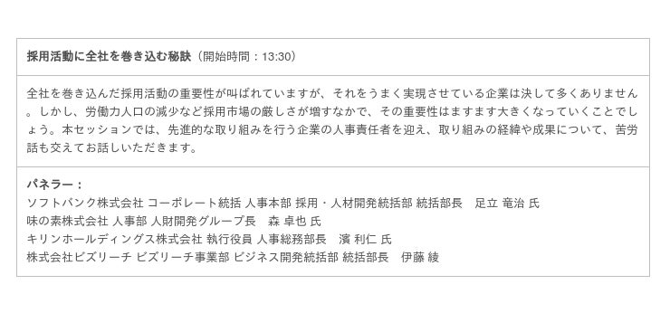 内容:基調講演、人事・採用責任者によるパネルセッション(全4セッション)