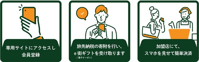 (※3) 旅先納税システムは、その街に触れて、共感したその場でスマホからできるふるさと納税「旅先納税」を実現するシステムです。e街ギフトとの併用によって、これまで返礼品の恩恵を受けづらかった地域の飲食店や観光施設で利用できる地域商品券を即座にスマホに返礼品としてお届けし、リアルタイムな地域還流を実現できます。また、「旅先納税」はギフティの登録商標です(2021年1月商標登録済み)