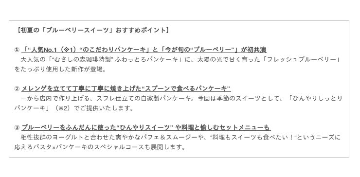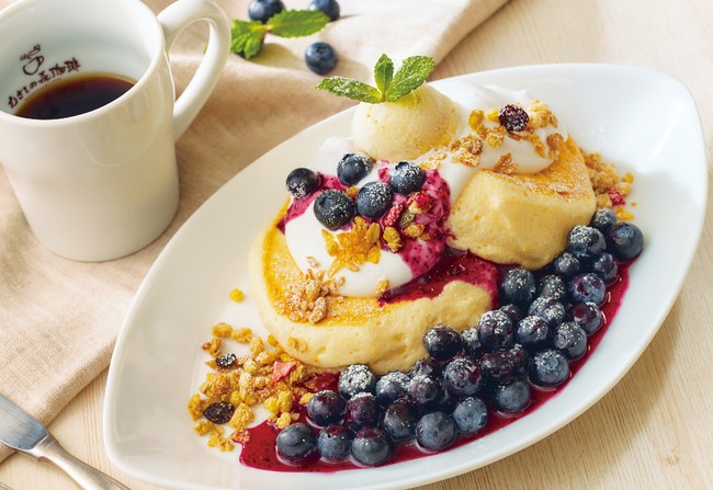 【むさしの森珈琲で旬の果実三昧!】ひんやりブルーベリースイーツ~人気No.1(※1)の「ふわっとろパンケーキ」にも新作誕生!~