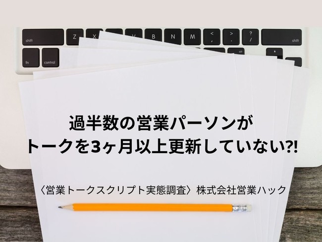株式会社営業ハック(本社:東京都港区・代表:笹田裕嗣)は、営業のトークスクリプトについて調査を実施いたしました。約300名の営業パーソンに「営業のトークスクリプトはどのぐらいの頻度で更新・編集しているか?」とアンケートを取り、その結果をここにご報告させていただきます。