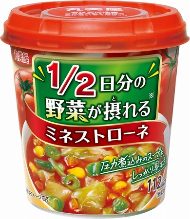 丸美屋食品工業株式会社(本社:東京都杉並区、社長:阿部豊太郎)では、「1/2日分の野菜が摂れる ミネストローネ」を2022年6月27日(月)からコンビニエンスストアで新発売いたします。「野菜をしっかり食べたい」というニーズに応えたカップスープを発売することで、市場を盛り上げます。