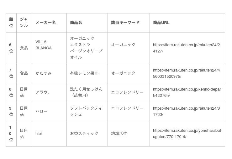 今回のランキング結果では、食品や日用品が多くランクインしており、サステナブルな商品が身近な存在として消費者の生活に入り込んできていることがうかがえる結果となりました。お茶やオイルなど自身の健康も考えつつ、サステナブルな商品を選択している傾向も見受けられました。また、20代のランキングでは「お香スティック」や「ソーラーランタン」、「アップルビネガー」など、「EARTH MALL with Rakuten」でサステナブルなストーリーを通じて、商品の魅力を発信する「編集部のお買いもの日記」で紹介している商品がランクインしており、総合ランキングと比較して、より商品の背景を踏まえて購入を検討していることがうかがえる結果となりました。