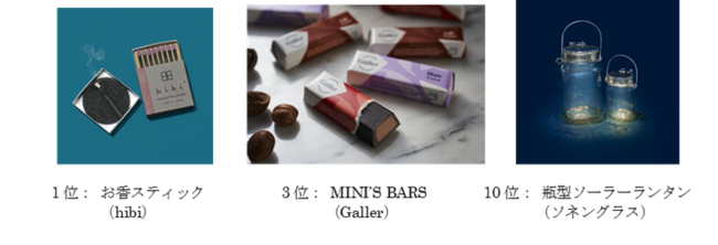 「“グリーン”な商品 売れ筋ランキング(20代)」では、兵庫県の伝統産業によって生産された「お香スティック」が1位となりました。また、カカオ農園など途上国で生産される原料は、労働者や環境に負荷をかけているケースもあるなか、フェアトレードで生産されているチョコレート「MINI’S BARS」が人気商品としてトップ3入りしました。加えて、南アフリカの雇用創出にもつながり、省エネも貢献できるインテリア商品「瓶型ソーラーランタン」もランクインしました。