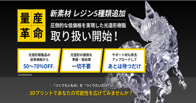 合同会社DMM.com(本社:東京都港区、会長 兼 CEO 亀山敬司、以下DMM )は、DMM.make 3Dプリント事業において、5種類の新しい光造形樹脂(レジン)の取り扱いを開始いたします。