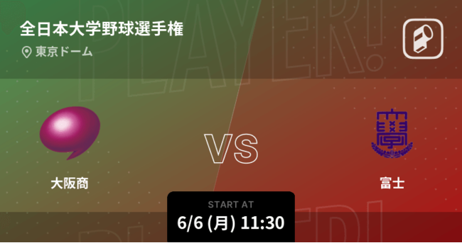 スポーツスタートアップ企業 ookami は、スポーツエンターテイメントアプリ「Player!」において、本日6月6日(月)より開幕する全日本大学野球選手権大会全試合をリアルタイム速報いたします。Player!から大学野球を応援しましょう!