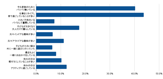 唯一、違いが表れた点としては「ゆっくり二人で話せる時間がほしい」と回答した人が9.9%と、あげる側の調査よりも多く票を集めました。お父さんたちは、意外に子どもと二人でゆっくり話せる時間をもたいと思っていることが分かります。