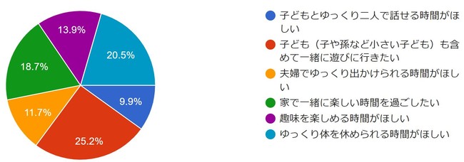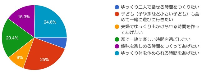 「家で一緒に楽しい時間を過ごしたい」という声が20.4%、「趣味を楽しめる時間をつくってあげたい」という声が15.3%と、プレゼントをあげるお父さんに合わせて、贈りたい時間も分かれる結果となりました。