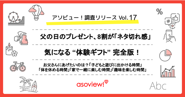 【アソビュー!調査リリース】父の日のプレゼント、8割が「ネタ切れ感」。お父さんにあげたいのは「子どもと遊びに出かける時間」「体を休める時間」「家で一緒に楽しむ時間」「趣味を楽しむ時間」