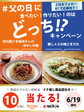 父の日に食べたい/作りたいメニューはどっち!? ごま&ごま油の【真誠×マルホン胡麻油】Twitterコラボキャンペーンを開催!
