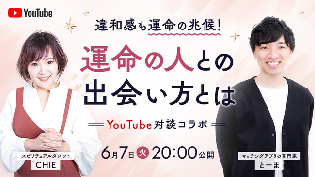 CHIEさんの公式YouTubeチャンネル「CHIE MYSTERY」では「運命の人の出会い方」についての対談を行い、とーまさんの公式YouTubeチャンネル「とーま【マッチングアプリの中のひと】」では視聴者から寄せられたお悩みに回答。互いの視聴者から多く寄せられる「運命の人・出会い」に着目し、それぞれの観点から対談を繰り広げます。